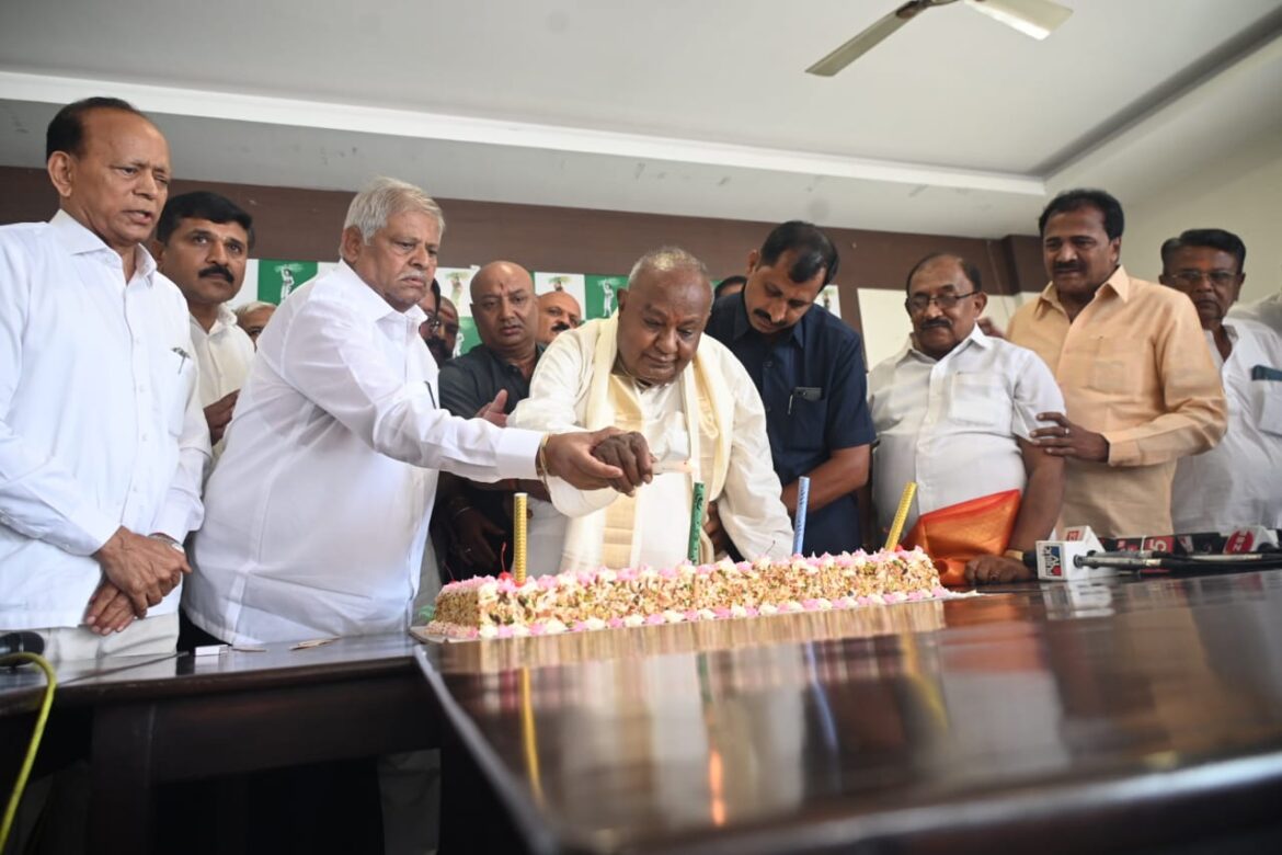 ಬಳಿಕ ತಿರುಪತಿಯಿಂದ ಬೆಂಗಳೂರಿಗೆ ವಾಪಸ್ಸಾದ ಮಾಜಿ ಪ್ರಧಾನಿಗಳು, ಜೆಡಿಎಸ್‌ ಮುಖಂಡರು ಮತ್ತು ಕಾರ್ಯರ್ತರು ರಾಜ್ಯ ಕಚೇರಿ ಜೆಪಿ ಭವನದಲ್ಲಿ ಹಮ್ಮಿಕೊಂಡಿದ್ದ ತಮ್ಮ ಜನ್ಮದಿನ ಕಾರ್ಯಕ್ರಮದಲ್ಲಿ ಪಾಲ್ಗೊಂಡರು. ಈ ಸಂದರ್ಭದಲ್ಲಿ ಅವರು ಬೃಹತ್‌ ಕೇಕ್‌ ಕತ್ತರಿಸಿ ಸಂಭ್ರಮಿಸಿದರು.
