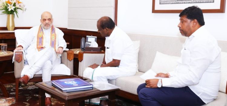 ಕುಮಾರಸ್ವಾಮಿ ಅವರನ್ನು ಇಂದು ಮಧ್ಯಾನ್ಹ ತಮ್ಮ ಕಚೇರಿಗೆ ಕರೆಸಿಕೊಂಡ ಅಮಿತ್ ಷಾ, ಸುದೀರ್ಘ ಚರ್ಚೆ ನಡೆಸಿದರು.