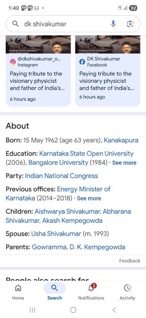 ಈ ಬೆಳವಣಿಗೆಗೆ ಪುಷ್ಟಿ ಎಂಬಂತೆ ಶಿವಕುಮಾರ್ ಅವರ ಫೇಸ್ಬುಕ್ ಹಾಗೂ ಇನ್ಸ್ಟಾಗ್ರಾಂ ಸಾಮಾಜಿಕ ಜಾಲತಾಣ ಖಾತೆಯಲ್ಲಿ ಇಂದು ಮುಂಜಾನೆ ಪೋಸ್ಟ್ ಒಂದು ಹಾಕಿದ್ದು, ಅದರಲ್ಲಿ ಸಂಕ್ಷಿಪ್ತವಾಗಿ ವ್ಯಕ್ತಿ ಪರಿಚಯವನ್ನು ಇಂಗ್ಲೀಷ್ನಲ್ಲಿ ನೀಡಲಾಗಿದೆ.