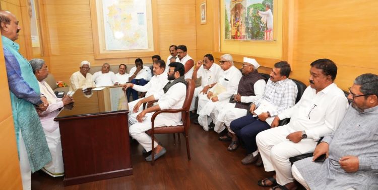 ವಿಧಾನಸೌಧದ ಮೊಗಸಾಲೆಯಲ್ಲಿರುವ ಮುಖ್ಯಮಂತ್ರಿ ಕೊಠಡಿಯಲ್ಲಿ ಮಂಗಳವಾರ ಹಿರಿಯ ಶಾಸಕರು ಸಿದ್ದರಾಮಯ್ಯ ಅವರನ್ನು ಭೇಟಿ ಮಾಡಿ ಸಂಪುಟ ಪುನರ್ ರಚನೆ ಮಾಡುವಂತೆ ಮನವಿ ಮಾಡಿದ್ದರು.