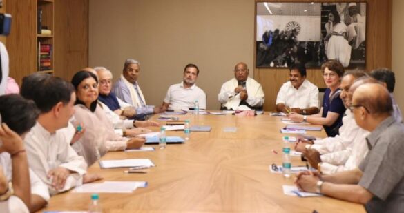 ಎಐಸಿಸಿ ಅಧ್ಯಕ್ಷ ಮಲ್ಲಿಕಾರ್ಜುನ ಖರ್ಗೆ ನೇತೃತ್ವದಲ್ಲಿ ನಡೆದ ಸಭೆಯಲ್ಲಿ ಪಕ್ಷದ ಅಧಿನಾಯಕ ರಾಹುಲ್ ಗಾಂಧಿ, ರಾಜಕೀಯ ಕಾರ್ಯದರ್ಶಿ ಕೆ.ಸಿ.ವೇಣುಗೊಪಾಲ್ ಸೇರಿದಂತೆ ಪ್ರಮುಖರು ಭಾಗವಹಿಸಿದ್ದರು.
